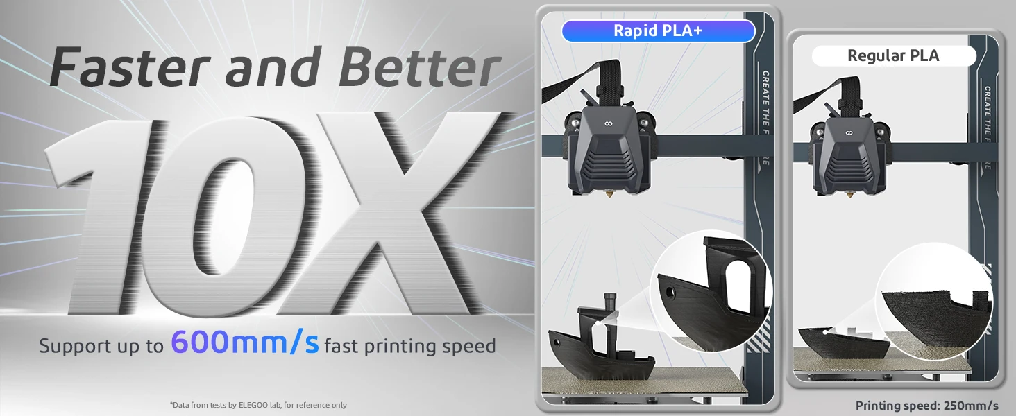 【 High-Speed Printing】With enhanced fluidity, our RAPID PLA+ filament melts rapidly and flows smoothly, allowing for a fast printing speed of up to 600mm/s. This feature ensures that you can complete your printing projects quickly without compromising on quality.